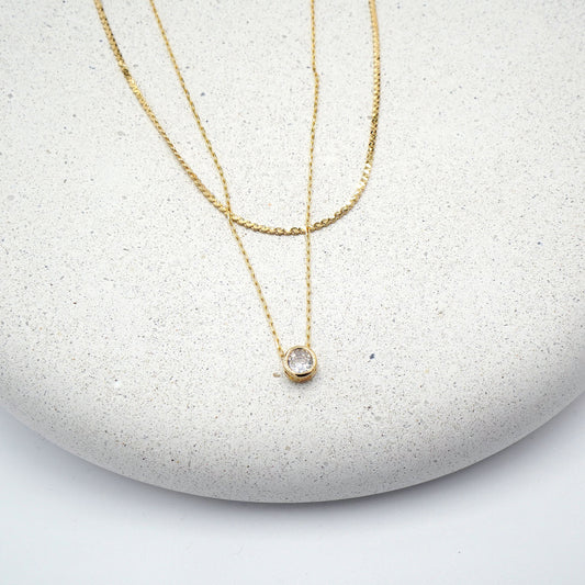 Double Chain CZ Pendant Necklace